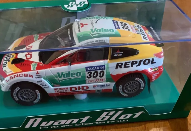 Miniatura de carro de rally embalada numa caixa verde Avant Slot