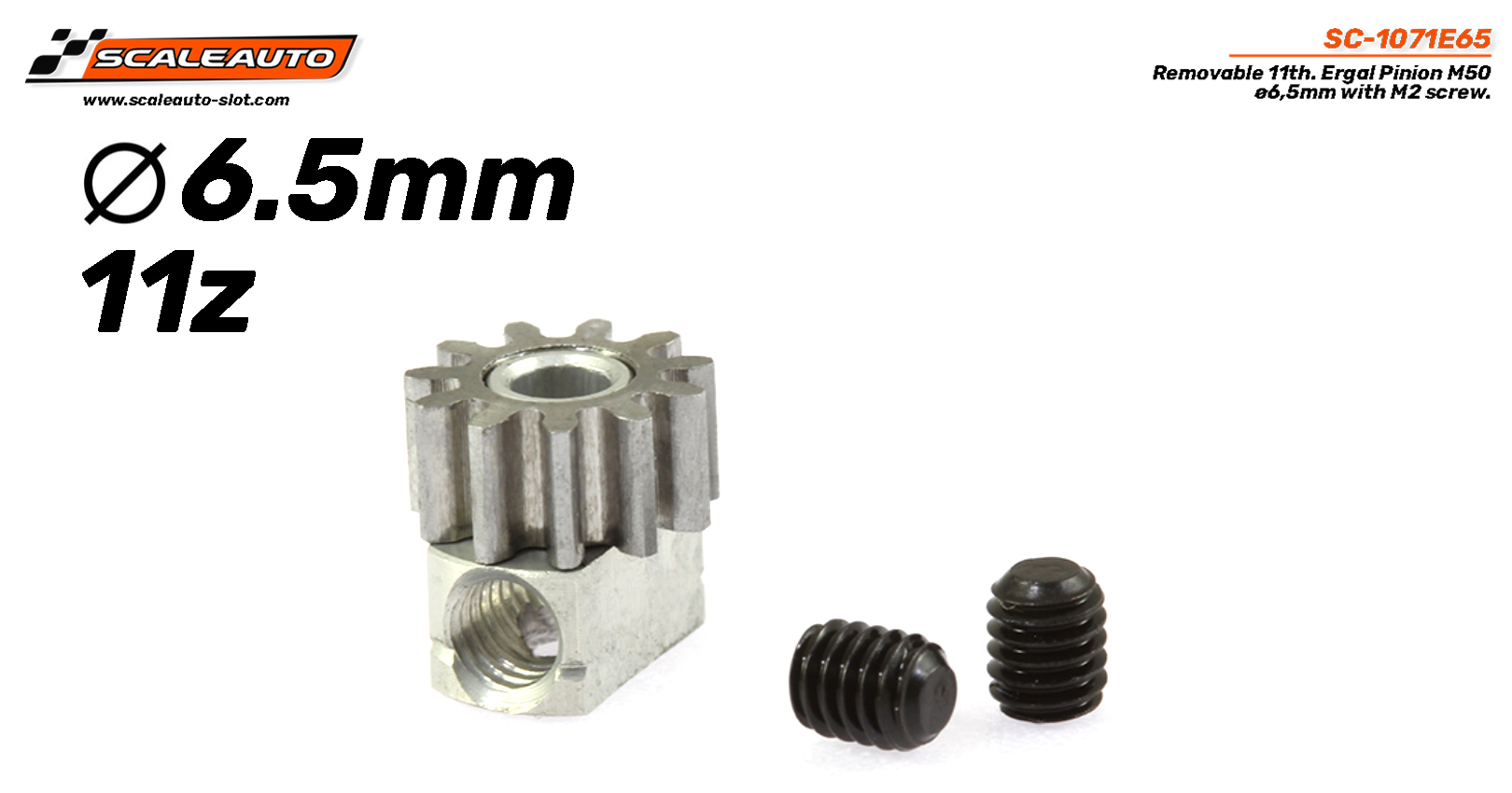 Piñón Extraíble 11d. M50 ø6,5mm em Ergal para eje 2mm com fixação através de tornillo M2,5mm.