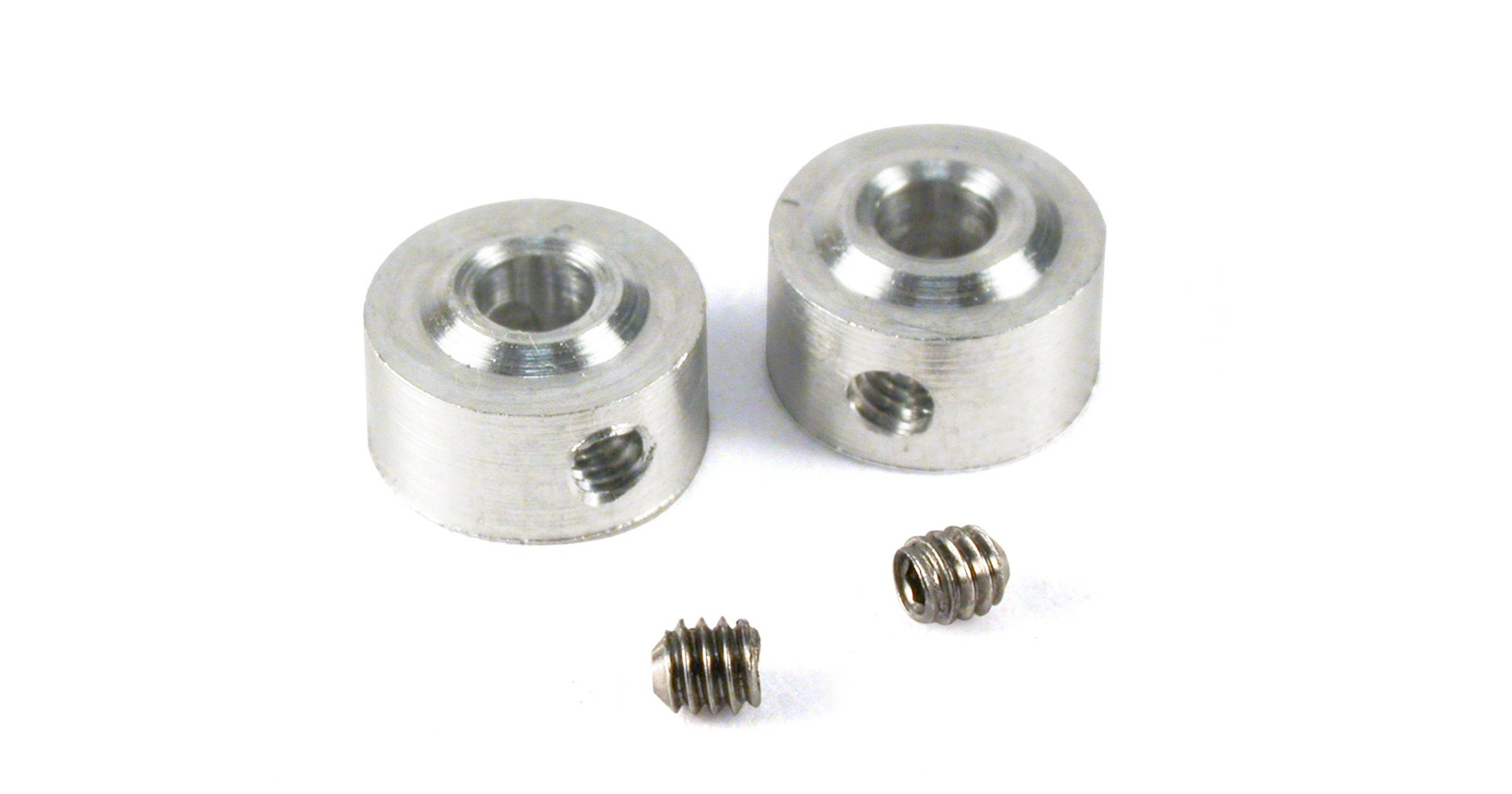 Tope Corona y Porta-Polea en Aluminio, para ejes de 3mm con fijacion tornillo M3.