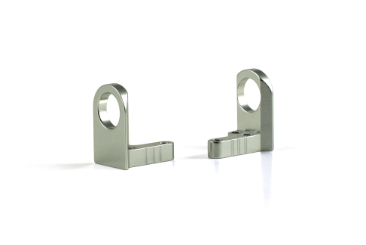 Par de acessórios metálicos prateados em forma de gancho com furos circulares
