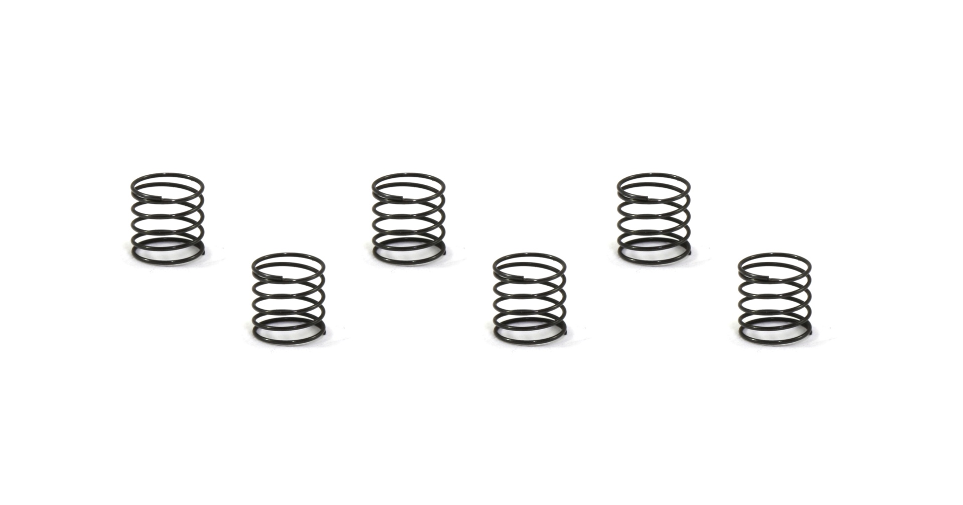 Cinco molas metálicas pretas cilíndricas sobre fundo branco