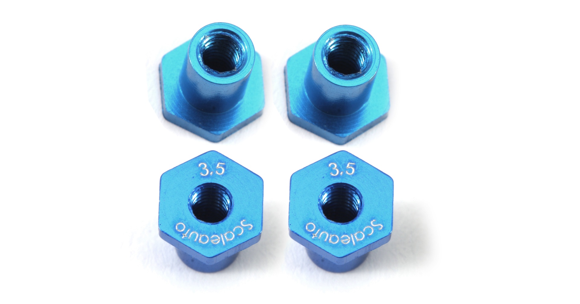 Quatro porcas azuis em metal com marcação 3.5 Sclaeuro