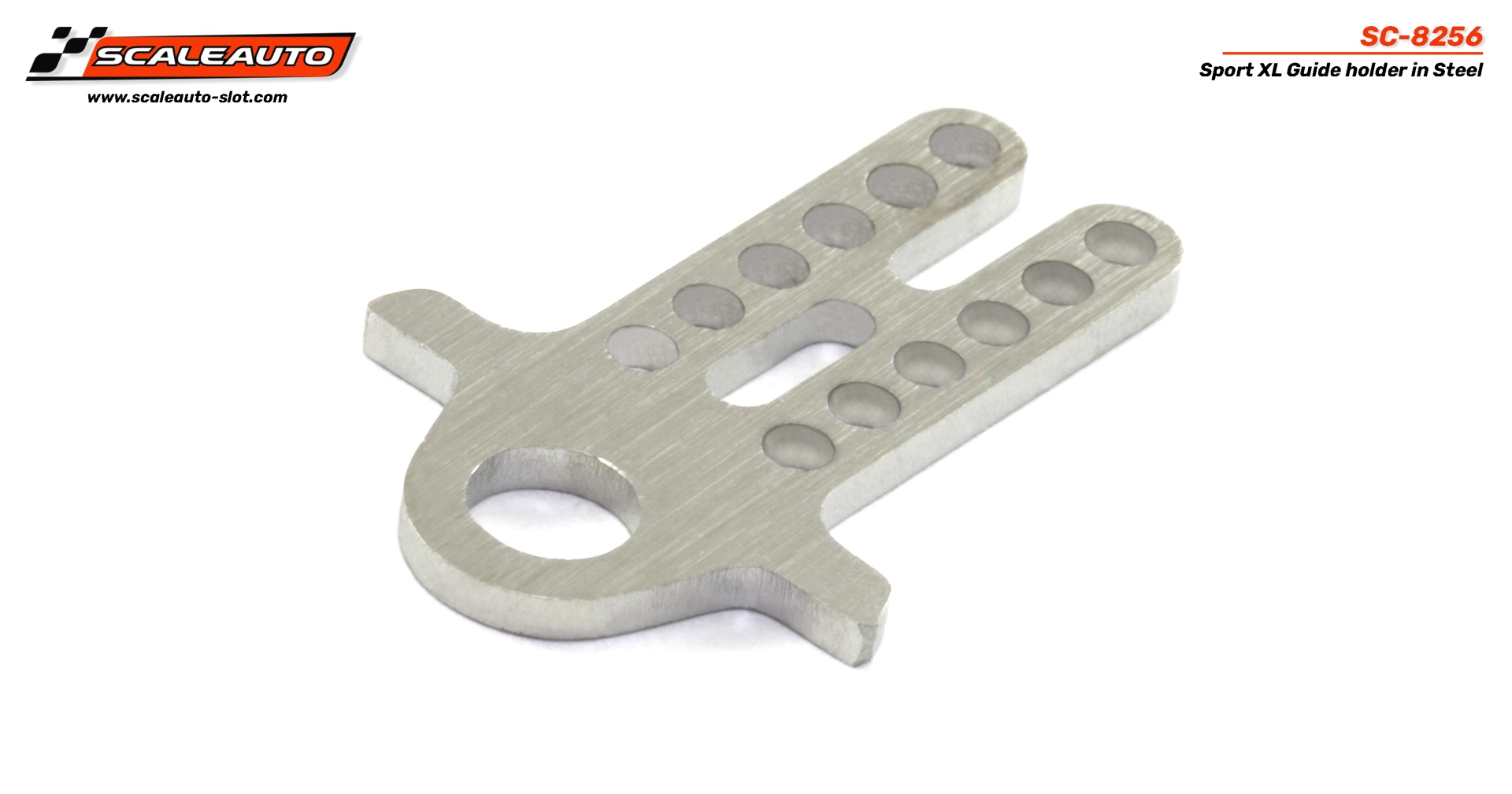 Suporte em aço para guia Sport XL da Scalauto com vários furos e acabamento prateado
