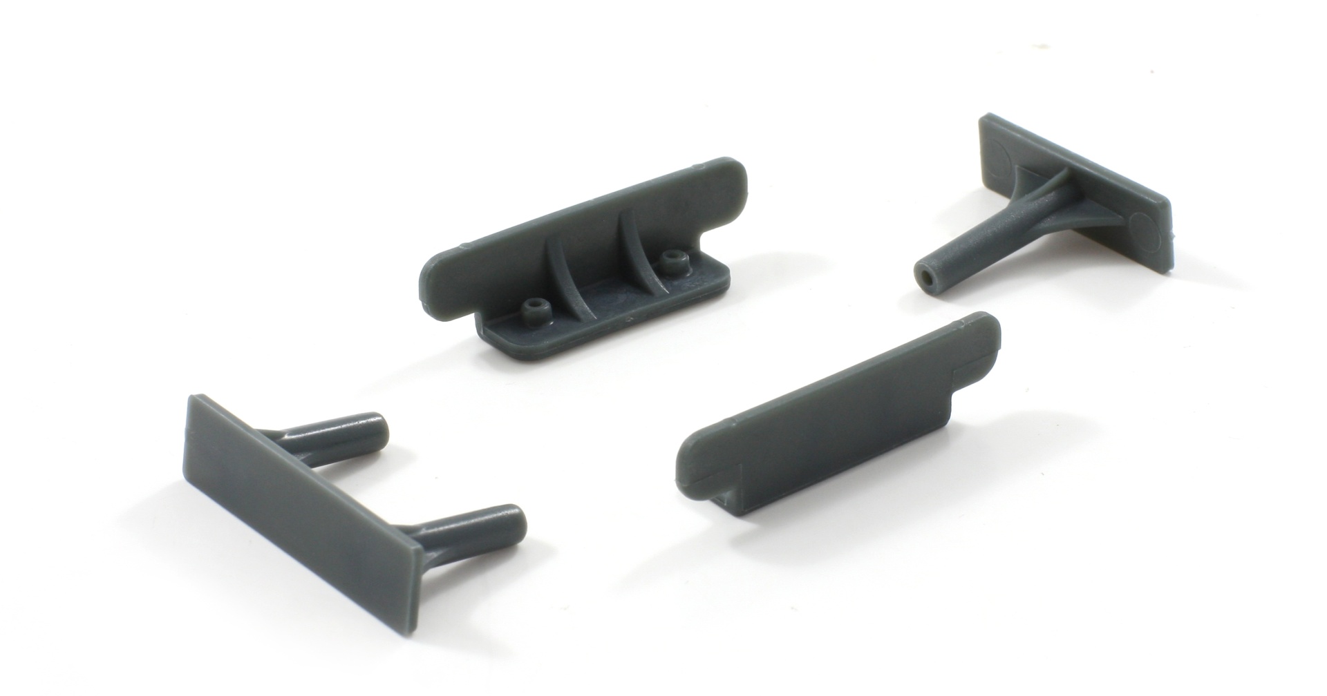 Quatro tampas plásticas pretas para encaixe sobre fundo branco