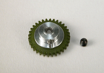Engrenagem metálica com dentes verdes e parafuso pequeno