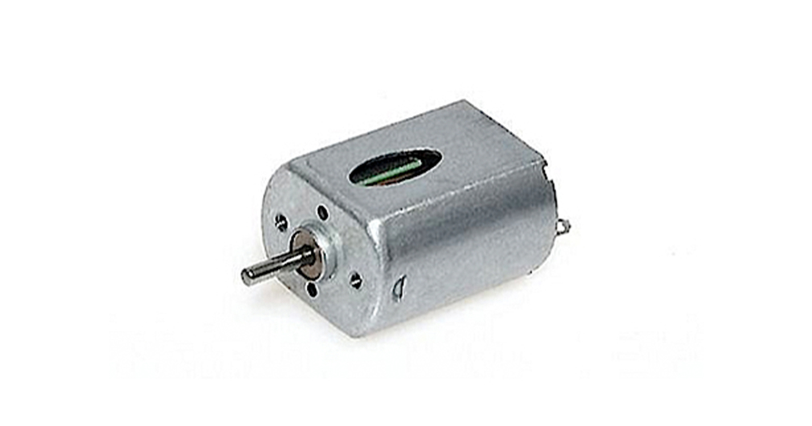 Motor elétrico pequeno cinzento com eixo metálico